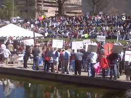 A good turnout at the first state level NC tea party. I see a few signs and pitchforks… but overall a peaceful gathering… speeches, music, cheering and clapping. The local media is keeping a low profile but I do see the channel 9 news van and someone from channel 3. I also see a few photographers working their way through the crowd.. interesting to see how this gets covered. Sent via BlackBerry